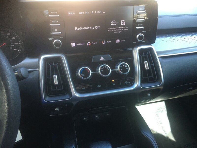 Inside, the Sorento LX boasts a spacious cabin that comfortably accommodates up to seven passengers, making it an excellent choice for family outings or road trips. The interior is thoughtfully designed with high-quality materials and a user-friendly layout. Standard features include cloth upholstery, a 10.25-inch touchscreen infotainment system with Apple CarPlay and Android Auto compatibility, and Bluetooth connectivity for seamless integration with your devices.